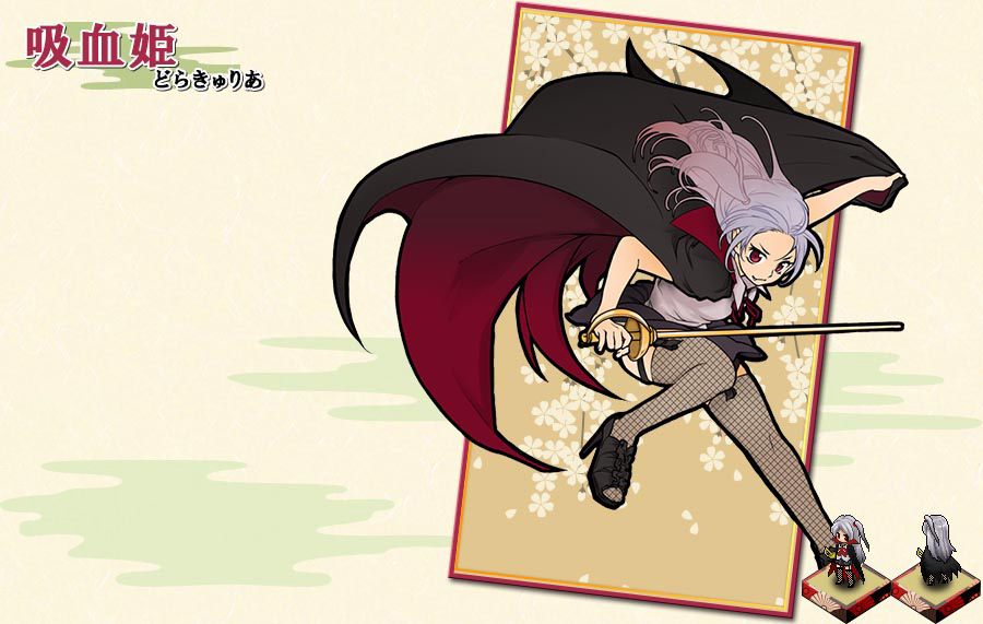 不死者とされ、血を吸う式姫。 水を越えられず 招かれなければ家に入れないなどの正統派。 ちなみに、日光に当たっても 真っ黒に日焼けするだけで 灰にはならないらしい。 好きなものは兎の血。